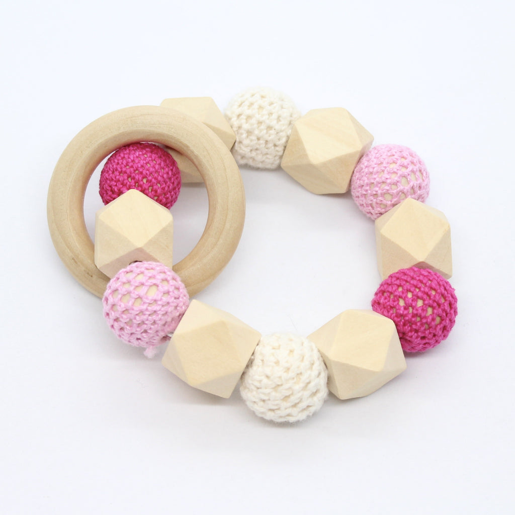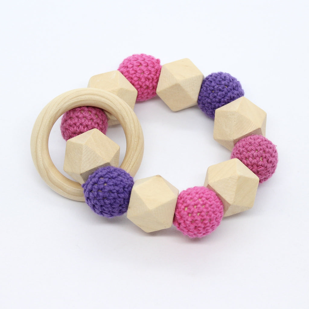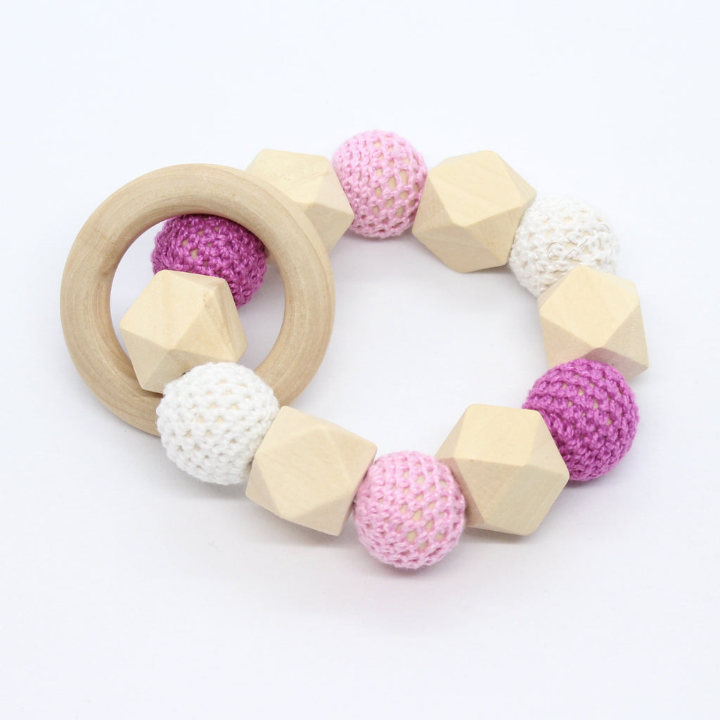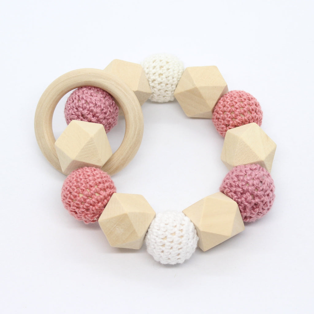 Bijtring met hexagoon en omhaakte kralen