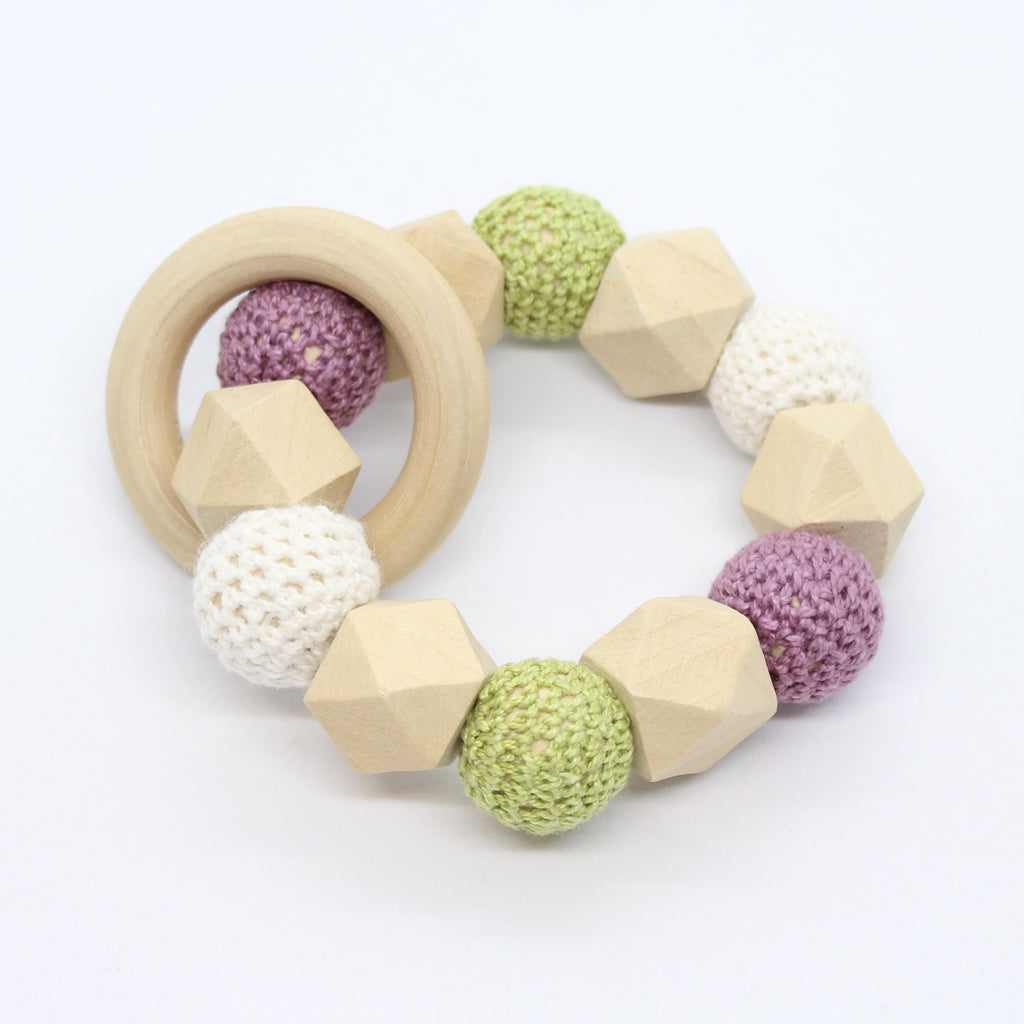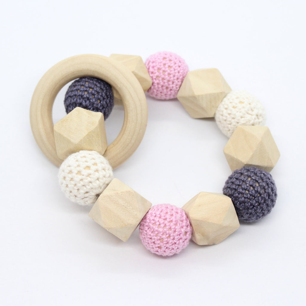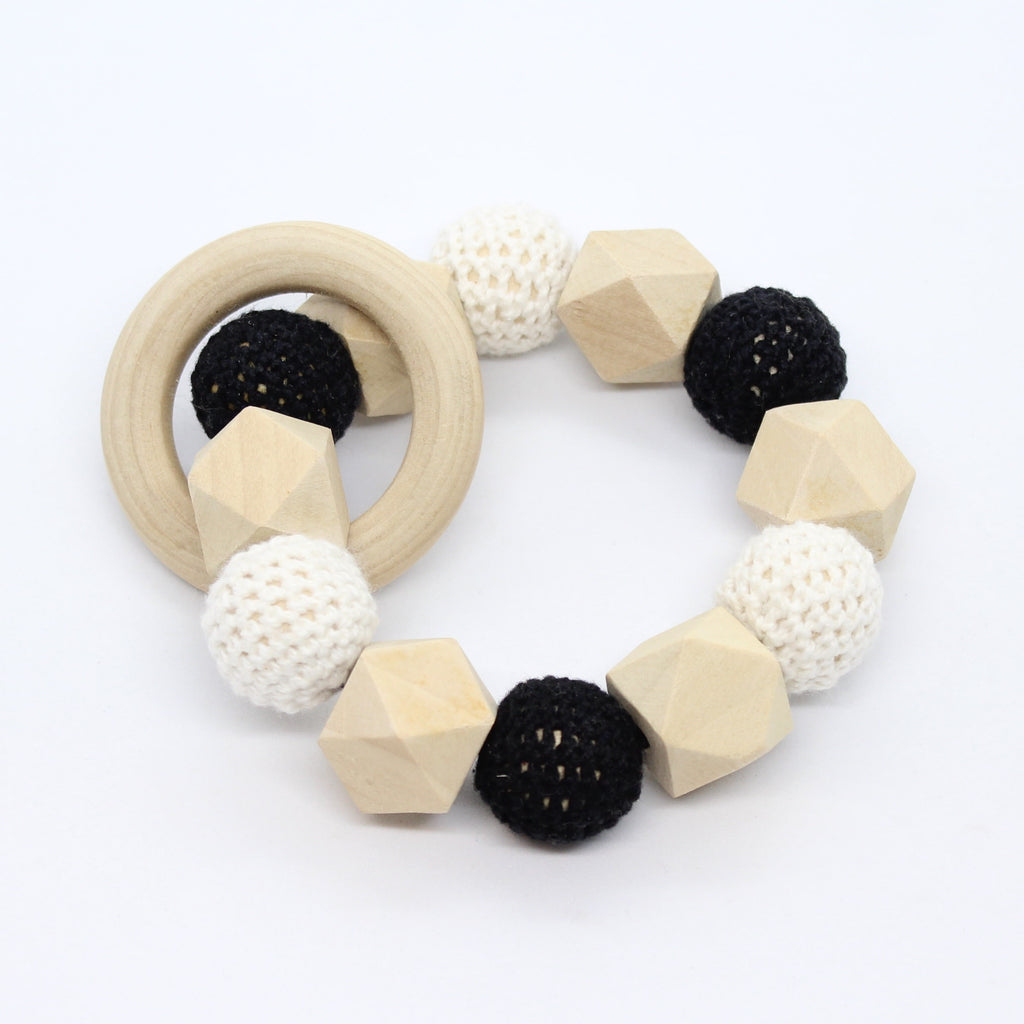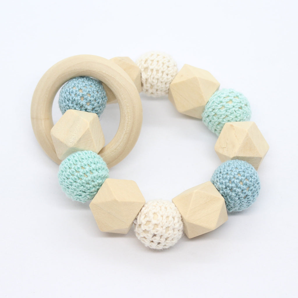 Bijtring met hexagoon en omhaakte kralen