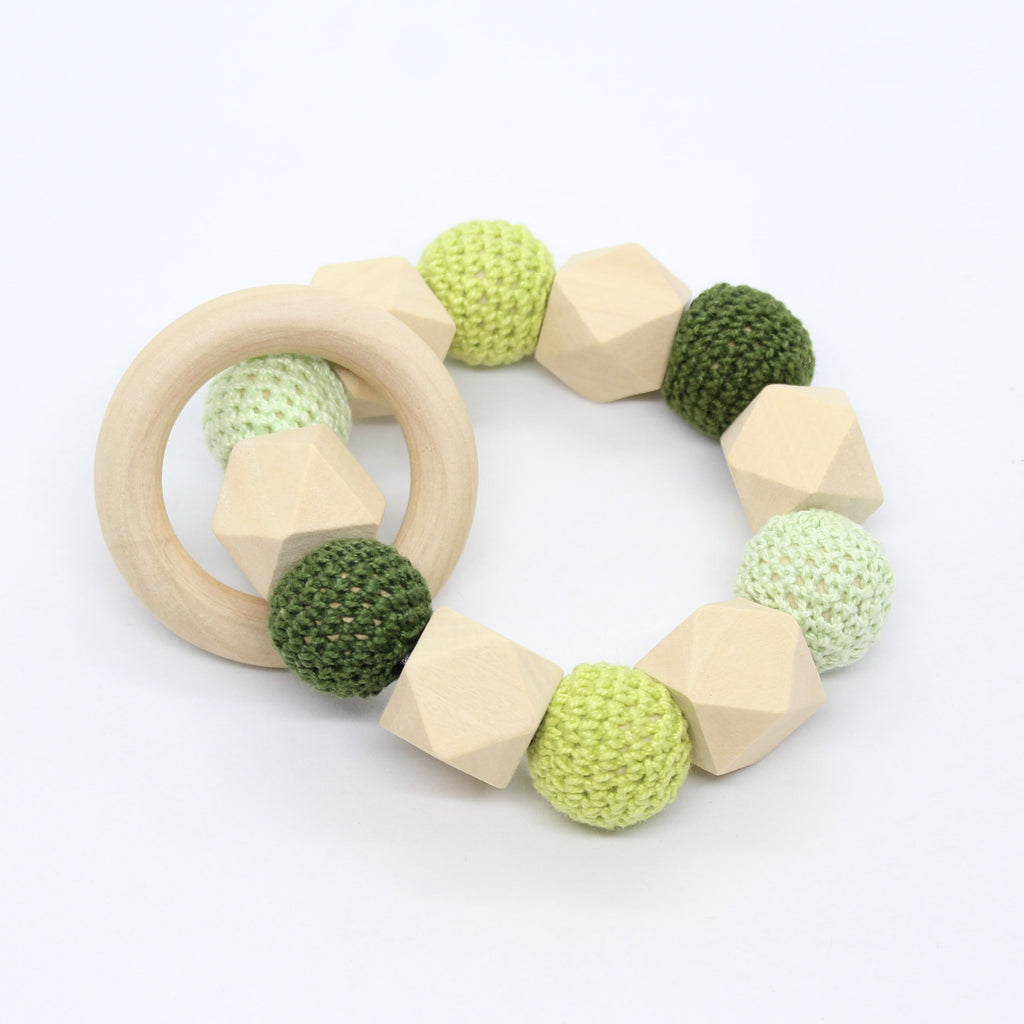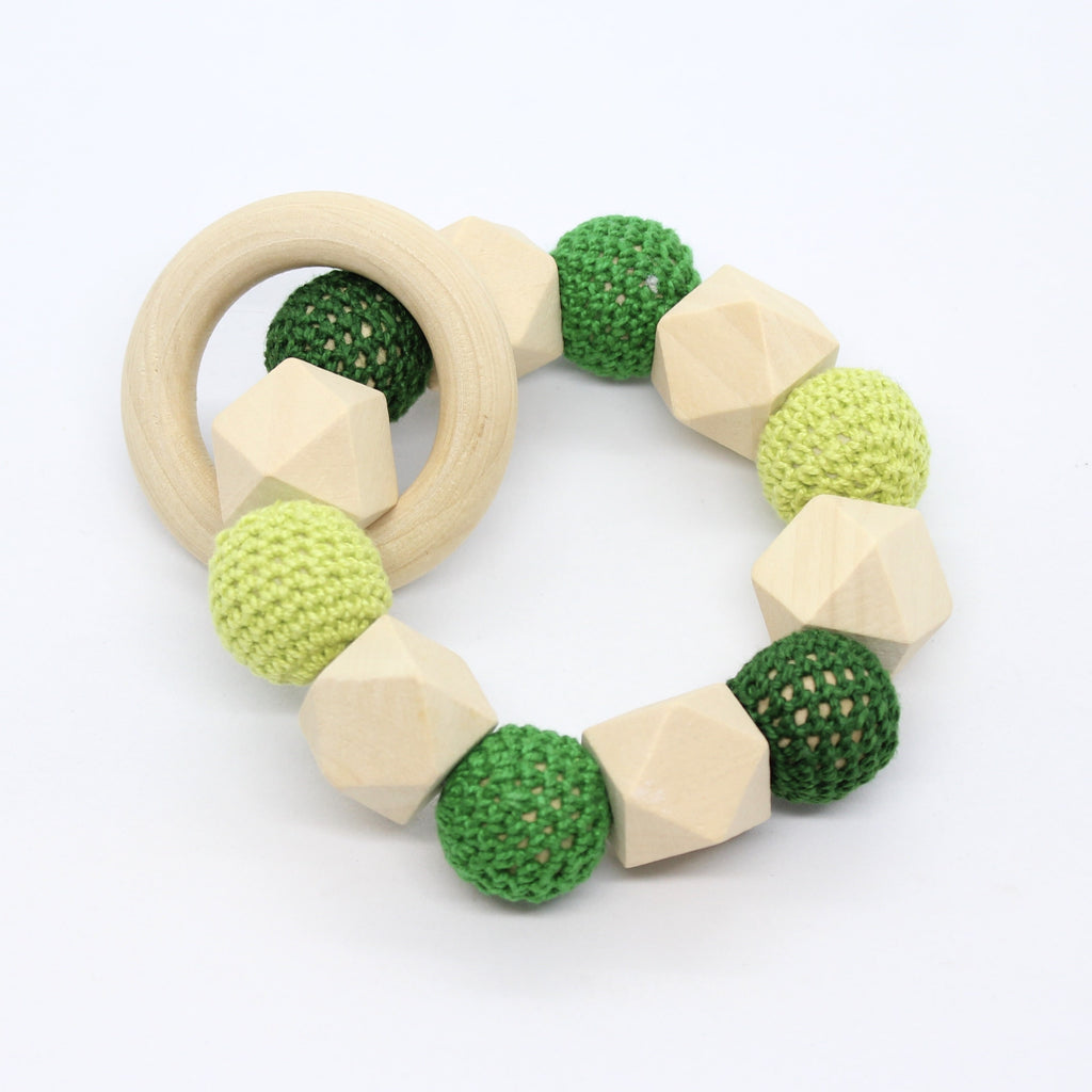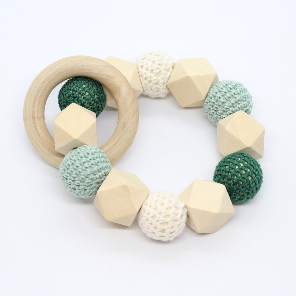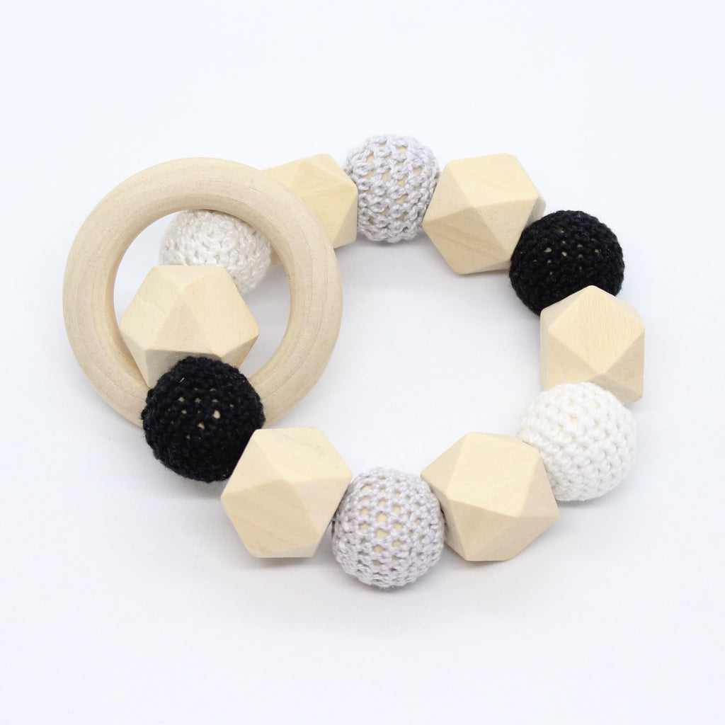 Bijtring met hexagoon en omhaakte kralen