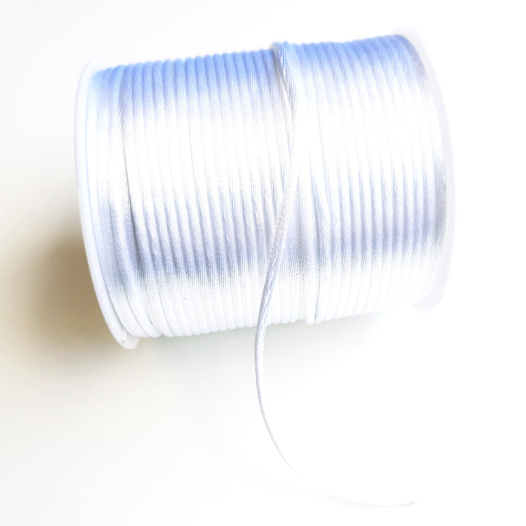 Satijnkoord met een dikte van 2mm in 3 kleuren, ideaal voor het maken van fopspeenkoorden.