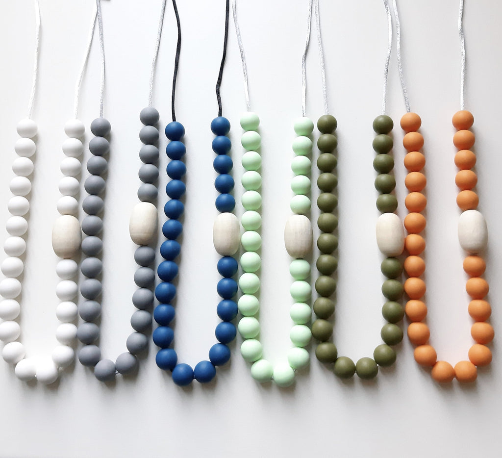 Onze halskettingen voor mama's zijn er niet alleen om mooi te zijn. De verschillende benamingen die gebruikt worden zeggen genoeg. Tandjesketting, bijtjuweel, voedingsketting...