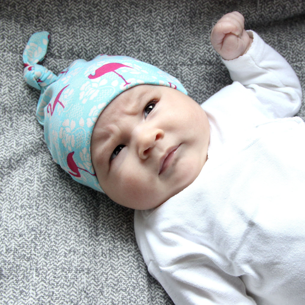 Onze babymutsjes zijn speciaal gemaakt voor de allerkleinsten met een hoofdomtrek tot ongeveer 35cm uit zachte jerseykatoen en met een knoopje bovenaan.