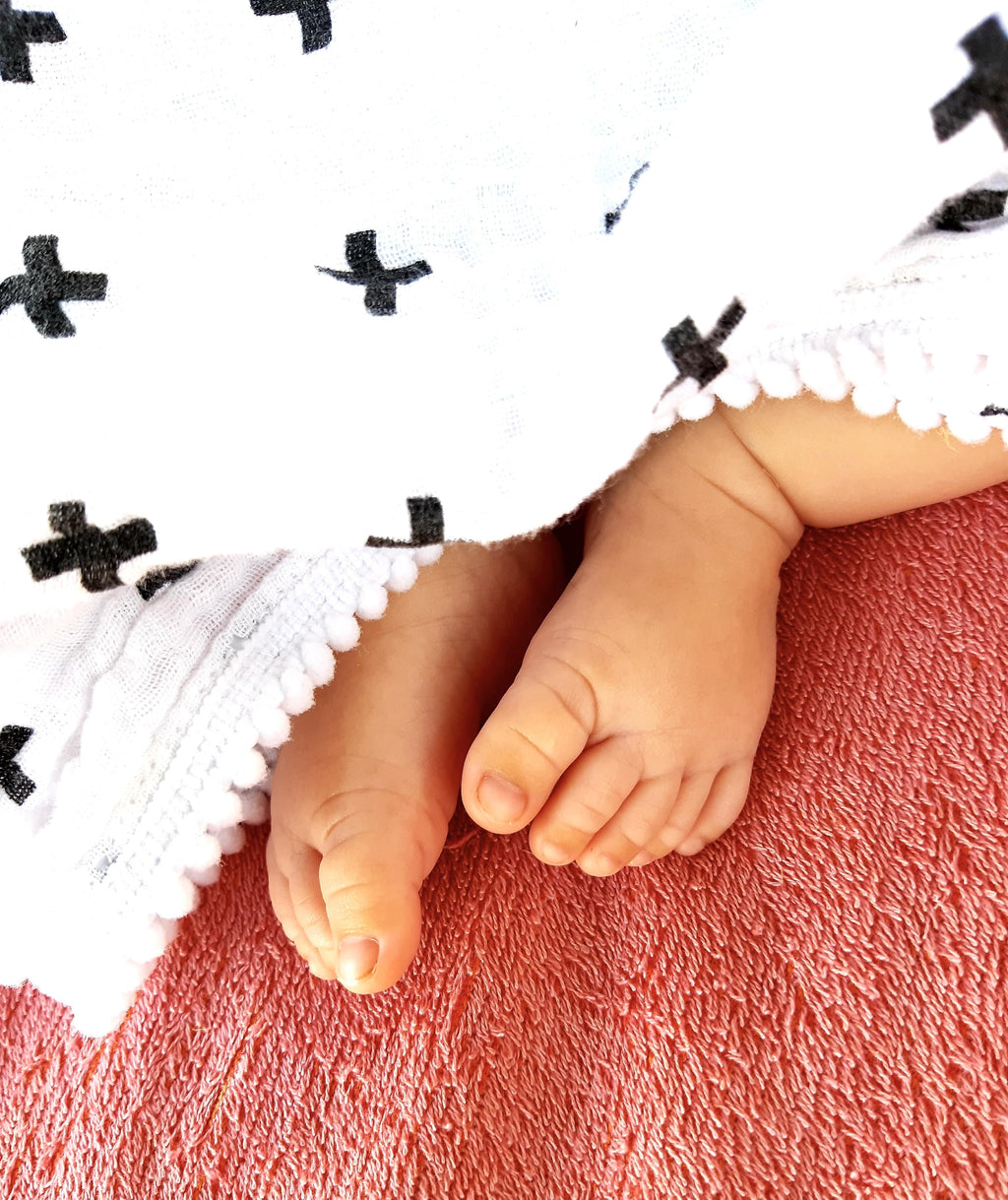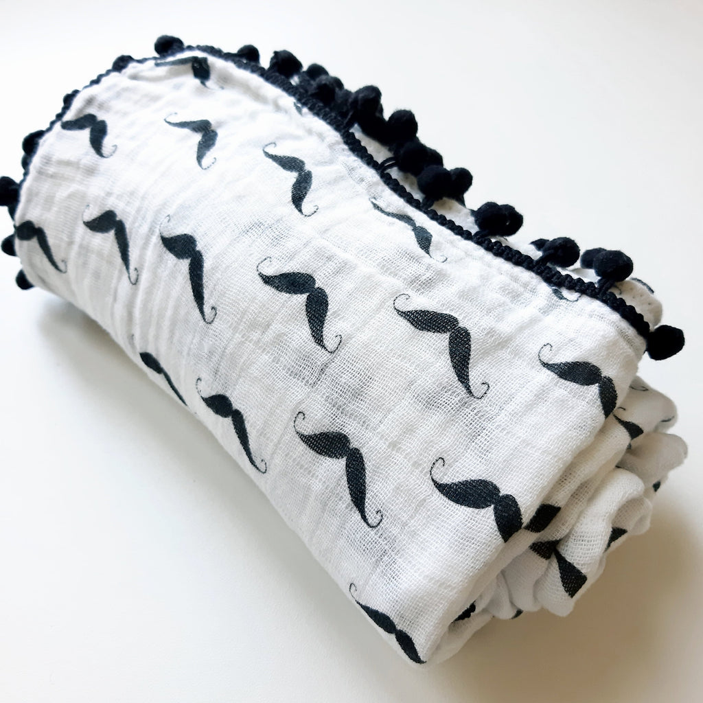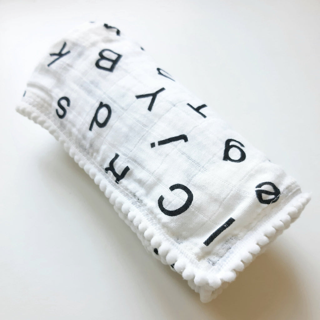Onze doeken zijn een heerlijk groot formaat van ongeveer 110x110cm. Ze zijn afgewerkt met een vrolijke pomponband naar keuze.